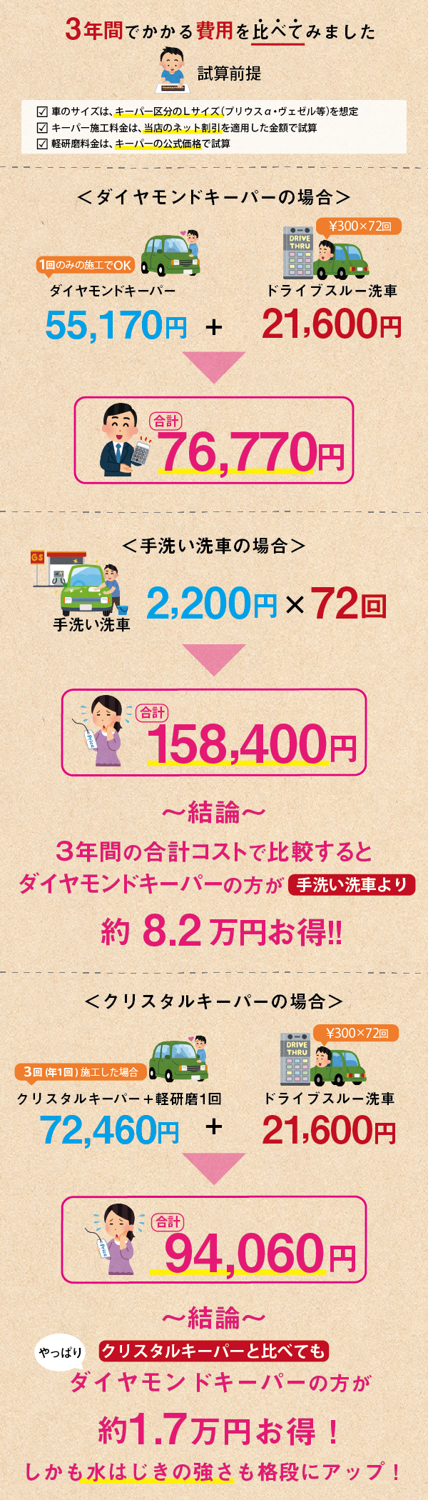 カーディーラーや車販売店のコーティング料金より断然お得!