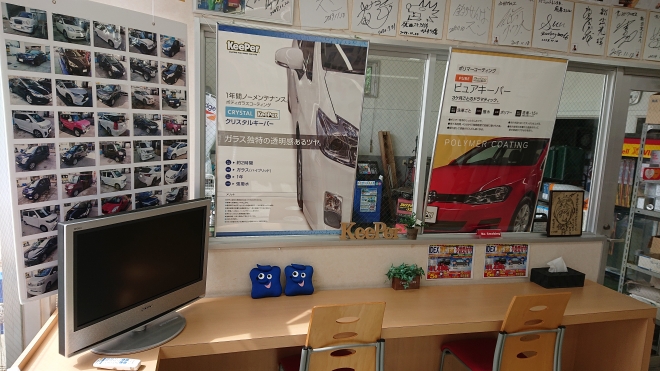 ①カーメンテナンス店に専用のコーティング場を併設する事により、土地代をおさえることに成功!